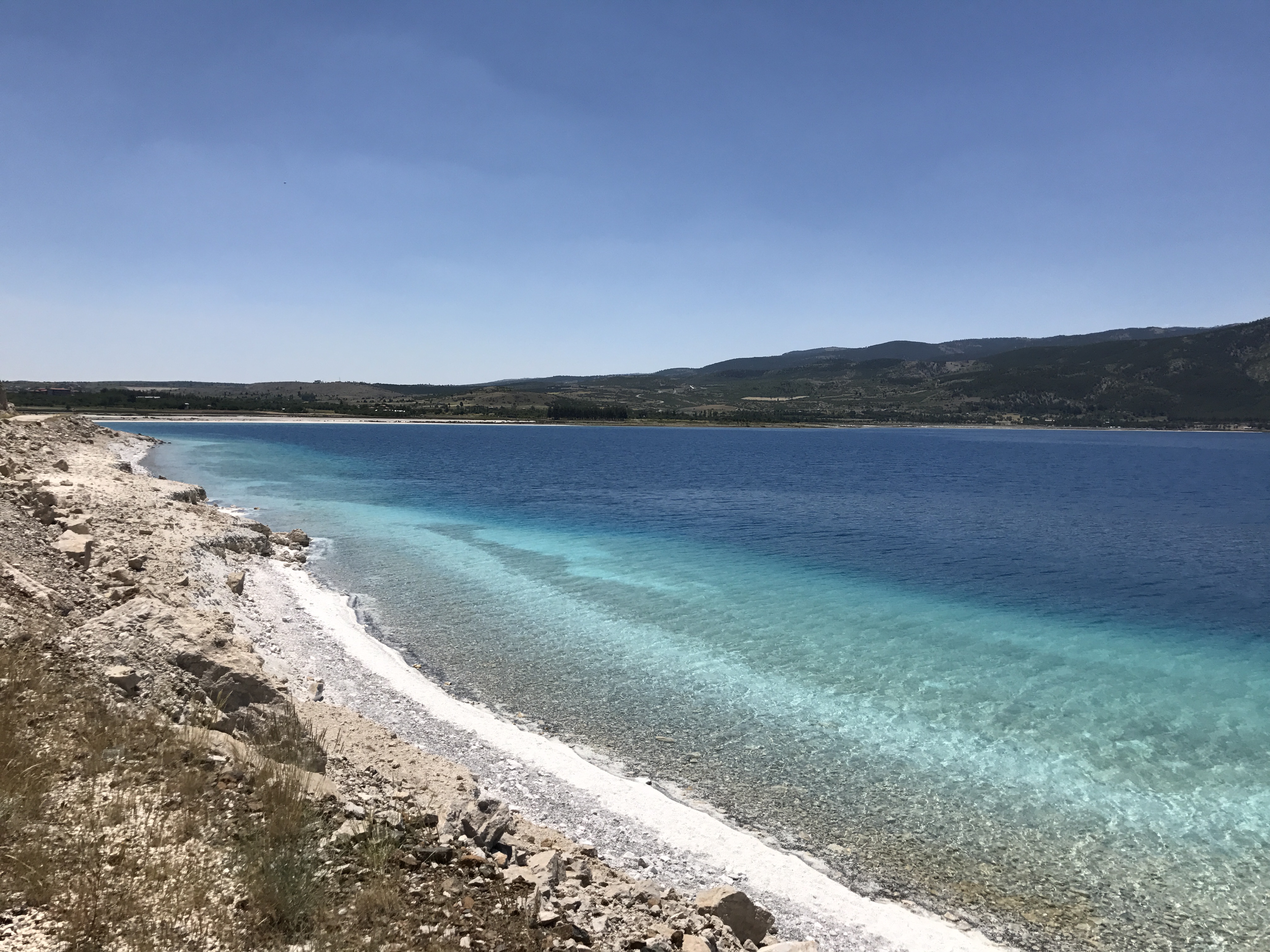İstanbul – Fethiye arası arabayla 9 saati bulabildiği için araya bir destinasyon daha ekleyelim istedik ve ne zamandır merak ettiğimiz Salda Gölü’ne doğru yola çıktık. Sabah 03:30’da Osmangazi Köprüsünü tercih ederek yolculuğumuzu başlattık. Yola çıkış saatimiz ideal olduğu için İstanbul’dan çıkışımız havanın aydınlanmasına denk geldi ve keyifli bir yolculuk başlangıcı oldu. Uzun yolculuklarda gece yolculuğu yerine bu şekilde tercih ettiğimizde daha az yoruyor diye düşünüyoruz. Öyle ki, Burdur’da bulunan Salda Gölü’ne kadar sadece bir kez kahvaltı için mola vermemiz yetti. Planladığımız gibi saat 11.30 gibi Salda Gölü’ne ulaştık. Etrafında hiçbir şey olmayan ve hakikaten dedikleri gibi Maldivlerin manzarasını aratmayan bu gölün bu kadar kendi haline bırakılmış olmasına şaşırdık doğrusu. Temiz pak varlığını koruyabilmesi için hayırlı olmuştur belki de diye düşündük. Arabamızı uygun bir yere çekip yüzmek için hazırlandık. Uzun bir yolculuğun üzerine buzz gibi tatlı suya kendimizi bırakmak, o manzaranın bir parçası olmak muhteşemdi!