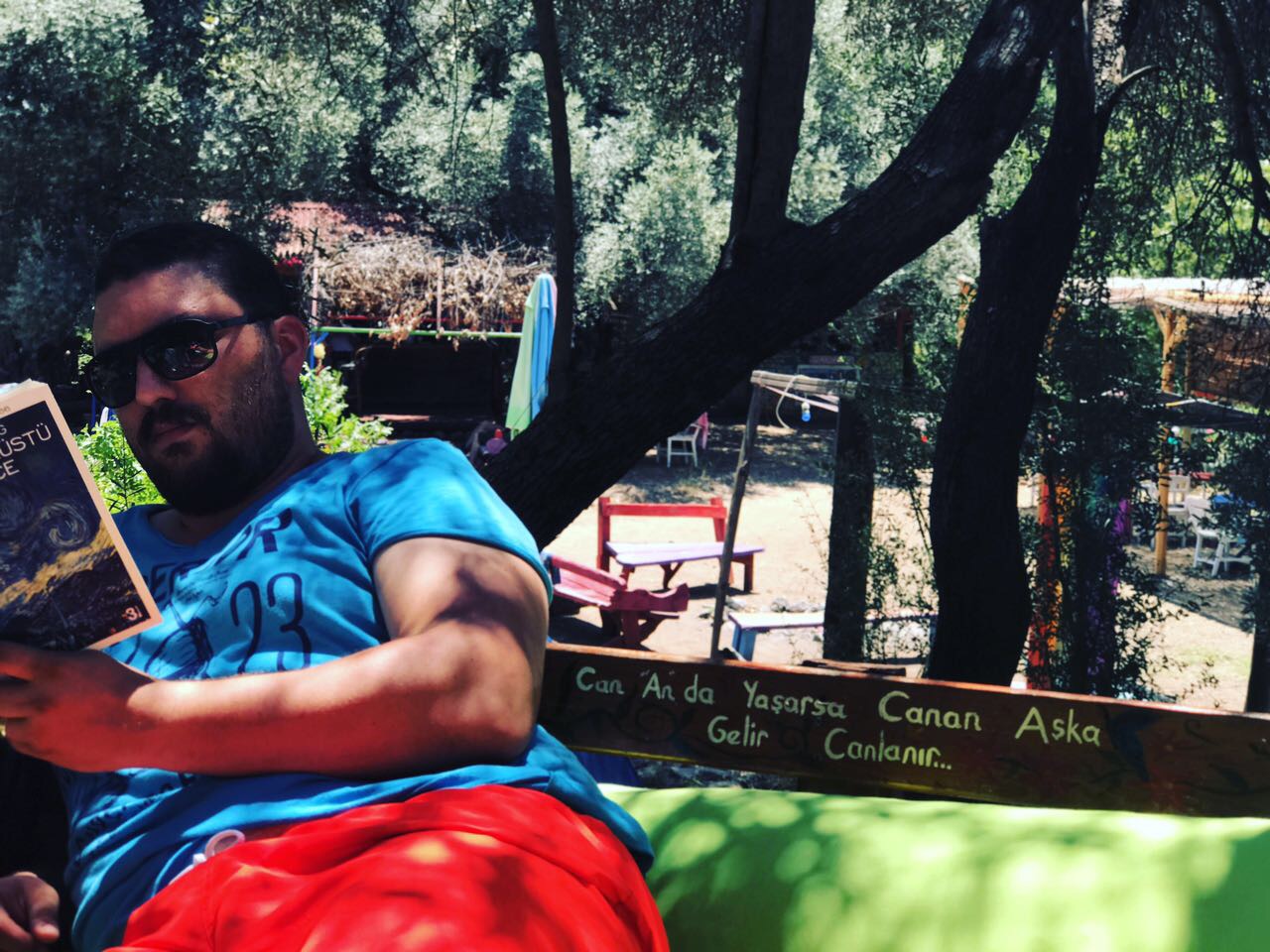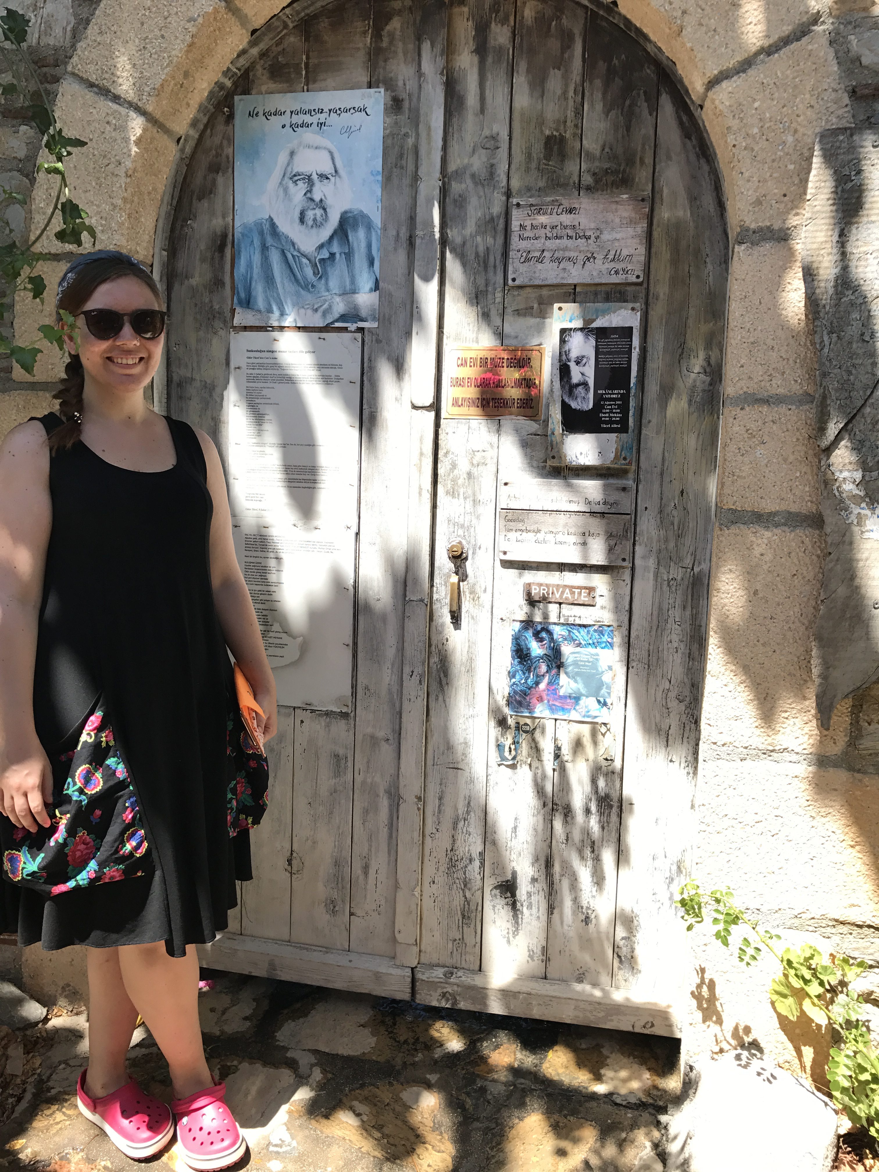 Sabah kahvaltımızın ardından, çadırımızı topladık ve yine müthiş bir iç huzurla Lilith Camping’e veda ettik. 4. gün çadırımızı Marmaris’e atmayı planlamıştık. Fethiye’den Marmaris’e geçmeden önce rotamıza Datça’yı ekledik. Fethiye-Datça arası yaklaşık 3 saat. Datça’ya gelir gelmez tabiki ilk rotamız Eski Datça’da bulunan Can Yücel’in evine gitmek oldu. Hala ev olduğu için ziyarete açık olmayan; ama kapısında Can Baba’ya ait yazılar yazan bu sevimli evde bir zamanlar onun olduğunu bilmek çok güzel bir histi. Keşke hala orada olabilseydi.