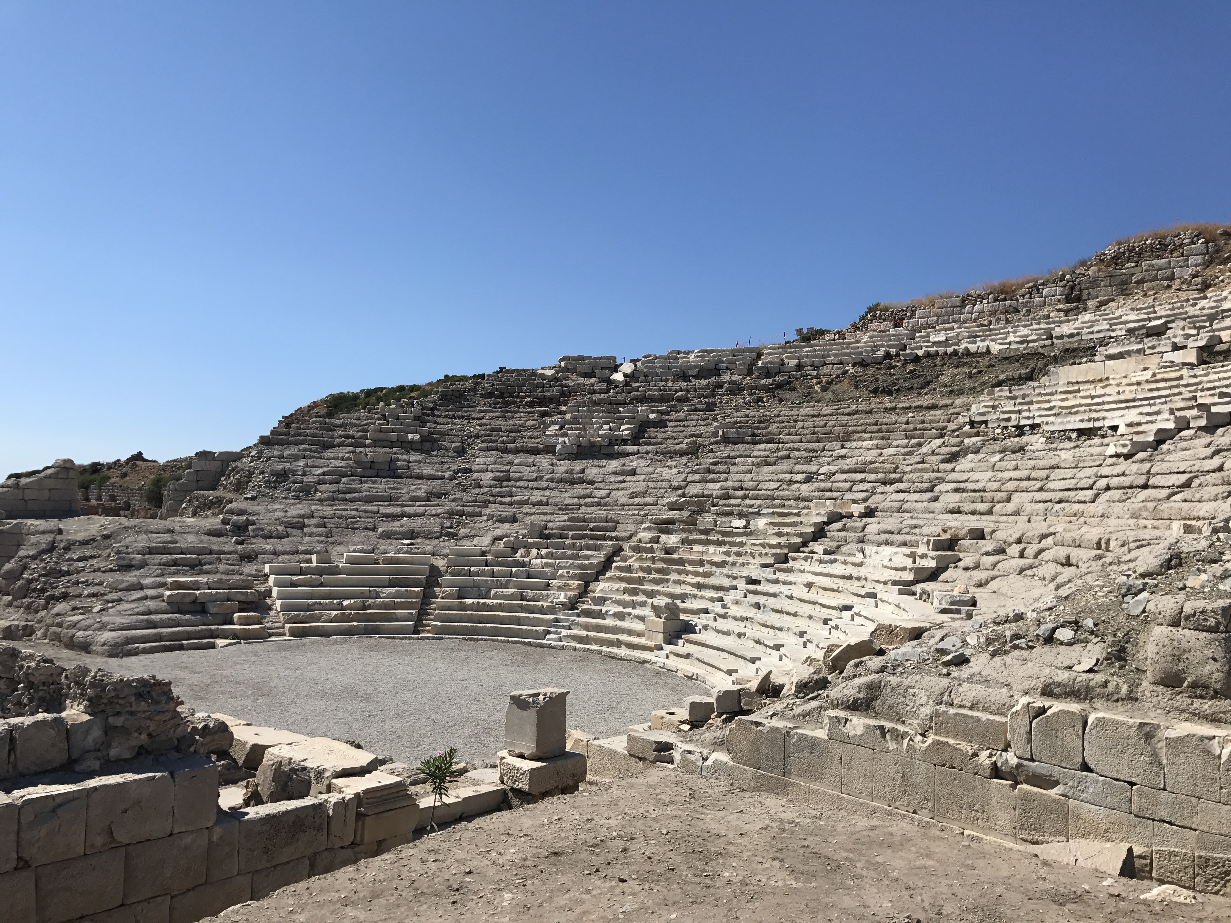 Can Baba ile vedalaştıktan sonra Datça yarımadasının en ucunda bulunan Knidos Antik Kenti’ne doğru yola çıktık. Marmaris’e dönüşümüzü de hesaba kattığımızda Knidos yolu gidiş dönüş epey zaman aldığı için Datça koylarını keşfetmeyi bir başka zamana bıraktık. Eski Datça ile Knidos arası yaklaşık 1 saat 15 dakika sürdü. Yolda Halikarnas Balıkçısı’nın Knidos hakkında yazdıklarını okuduğumuz için bir an önce varmak için sabırsızlandık. Köylerin arasından geçerek vardığımız Knidos yolu hala keşfedilmeyi bekleyen kocaman bir antik liman kenti. Araştırma yapılan bölge de çalışmalar henüz tamamlanmamış. Ancak konumu dolayısıyla dönemin önemli bir liman kenti olduğunu hemen anlayabiliyorsunuz. Sultan Abdülmecid döneminde İngiliz Charles Newton padişahtan izin alarak burada kazılar yapmış ve bulduklarını İngiltere’ye götürerek hizmetlerinden dolayı Sir ünvanı almış. Malesef ülkemizdeki çoğu antik kentin tarihinde böyle talihsiz durumlar var. Londra’daki British Museum neredeyse bu topraklarla beslenmiş durumda. Knidos’un kazı tarihi uzun süreli sorunlarla dolu. Yeteri kadar önem verilmediği için ve sorunlarla vakit kaybedildiği için hala gün yüzüne çıkarılmayı bekleyen çok değerli bir hazine. Antik çağlarda burada bulunduğu söylenen Afrodit heykeli için bile gemilerin rotasına eklediği bu önemli kent şu an yarımadanın en ucunda sessizce kaderinin ışıldayacağı günü bekliyor.