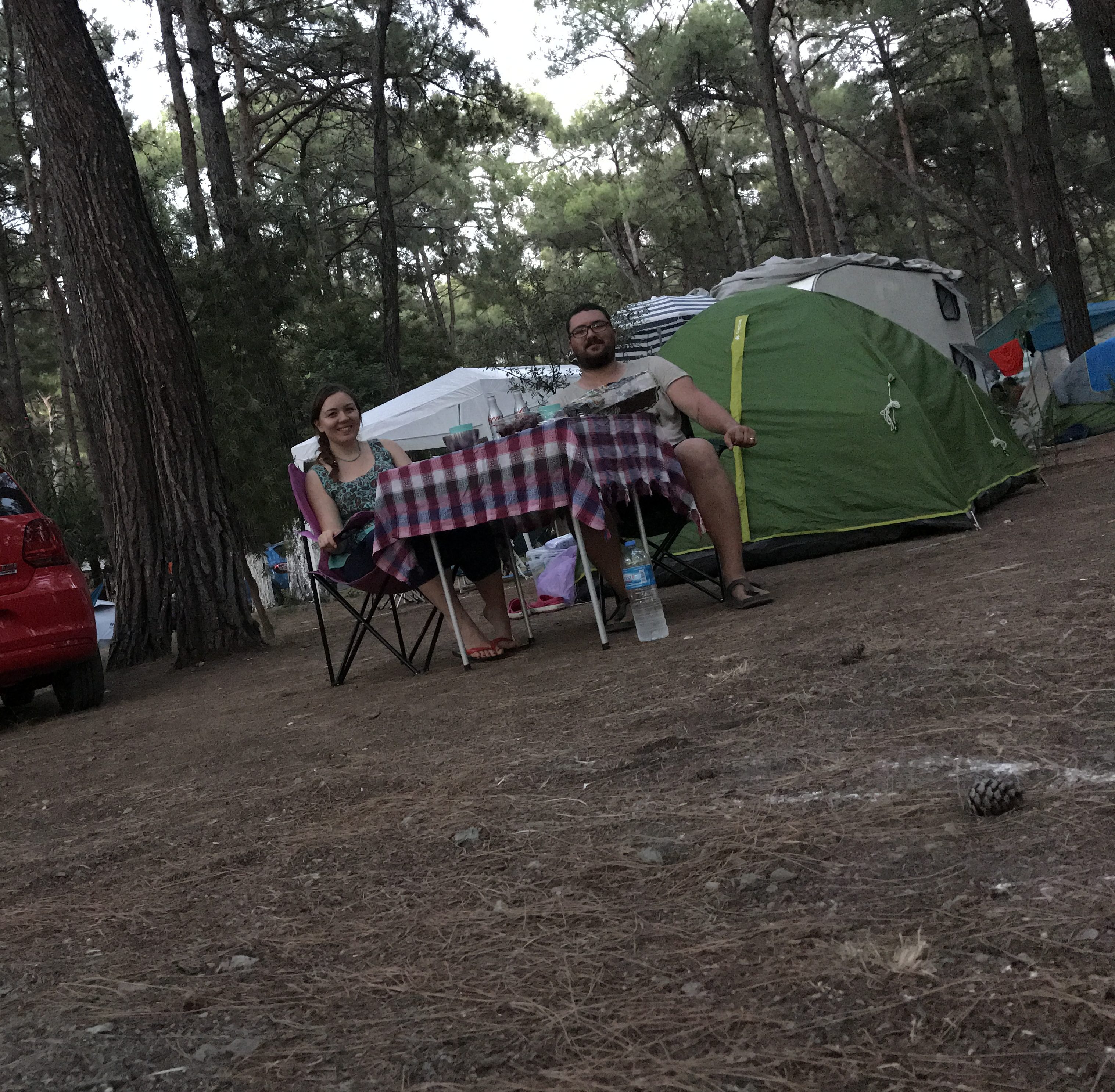 Sabah çadırımızı toplayarak Marmaris’e doğru yola çıktık. 1 saatten az sürede Marmaris merkeze ulaşarak, anlaştığımız tekne turunun ofisine gittik. Ofisten servislerle teknelere götürüldük. Her şey dahil olarak anlaştığımız tekne turundan memnun kaldık. Siz de buradan iletişime geçerek, bu turu tercih edebilirsiniz. Gittiğimiz koyların her biri harikaydı. Turunç koyunda ise 45 dakika sahil kasabasını keşfedebilme molası verdiler. Turun tek dezavantajı her şey dahil olduğu için içecekleri su da dahil olmak üzere, bardakta veriyorlar. Günün sonunda denizin keyfini çıkarabildik ve dinlenebildik. Sürekli bangır bangır müzik olmaması da epey iyiydi. Tur bitiminde yine servislerle tur ofisine bırakıldık ve 2 gece geçireceğimiz Akyaka Orman Kampı’na doğru yola çıktık. Burası da Ak-Tur gibi içeri kimlik bilgileri ile girilen kapalı bir kamp alanı, ama çadır alanları serbest. Yani isteyen istediği yere atabiliyor çadırını. Burada da elektrik ve buzdolabı kiralama hizmeti sunuluyor. Açıkçası diğer kamp alanı kadar memnun kalmadık. Tuvaletler yetersiz sayıda ve pek iyi değildi. En azından alaturka seçeneği vardı. Duşlar da pek iyiydi denemez ve su soğuk akıyordu. Yakınında bulunan sahil ise çok kalabalıktı. Burayı tercih etmemizin sebebi, ertesi gün çıkacağımız Gökova Tekne turunun kampa 15 dakikalık yürüme mesafesinde olmasıydı. Kendimize uygun bir yer bulduk ve bizim için kampın olumsuz özelliklerine rağmen keyifli bir tercih oldu.