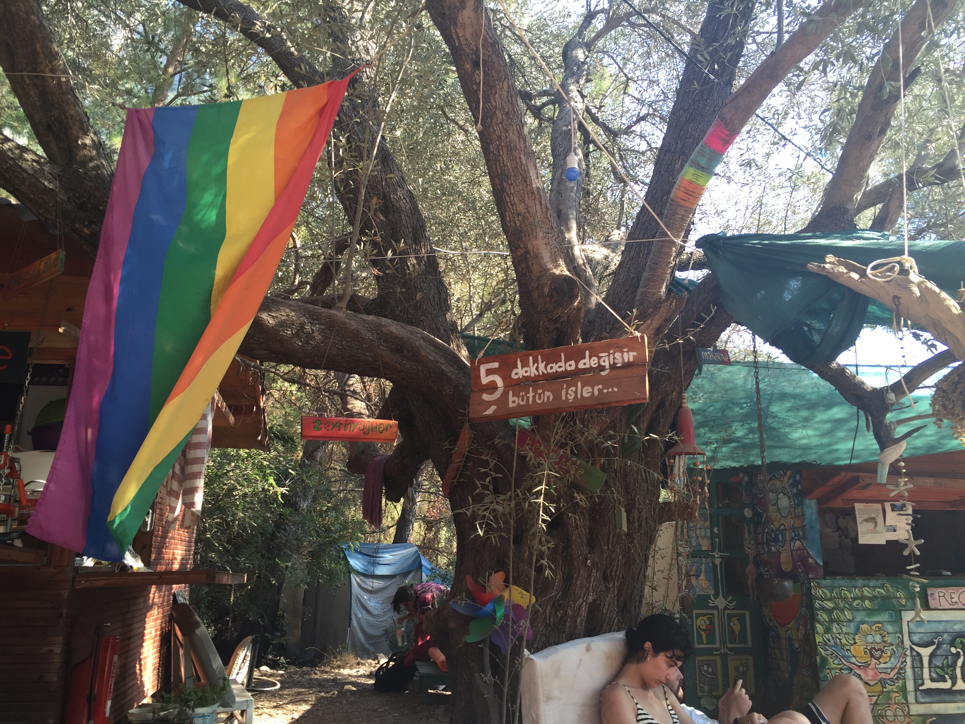 - Kamp alanının renkli yazılarla süslenmiş resepsiyonuna kimliklerimizi bıraktık ve güler yüzlü sahibinden yatağımız için pompa isteyerek önce yaşam alanımızı hazırladık. O kadar huzur verici bir yer ki. Kamp alanının ortasında bir bar var. Gün içerisinde inanılmaz lezzetli gözlemeler ve başka yemekler yiyebileceğiniz alkollü/alkolsüz içecek alabileceğiniz, belirli saatlerde waffle sipariş edebileceğiniz tahminlerinizin çok üzerinde lezzetli ürünleri olan bir bar hayal edin. Müzikler de ortama çok elverişli. Sürekli yanınızda para taşımanıza da gerek kalmıyor. Kimliğiniz resepsiyonda olduğu için bara sipariş verdiğinizde adınızı yazdırıyorsunuz. Çıkışta ödeme yapılıyor.